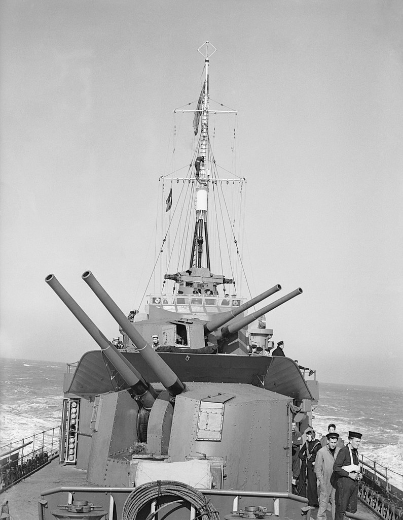 ↩︎ - The HMS Termagant and HMS Tuscan were armed with four 4.7-inch (120-mm) QF Mk IX guns mounted in separate turrets, fore and aft. Firing rate was 15 rounds a minute and maximum range 15,500 metres. Muzzle velocity was 810 metres a second. T-class destroyers were also equipped with two 40 mm Bofors, eight 20 mm anti-aircraft guns, and eight 21-inch (53.3 cm) torpedo tubes.