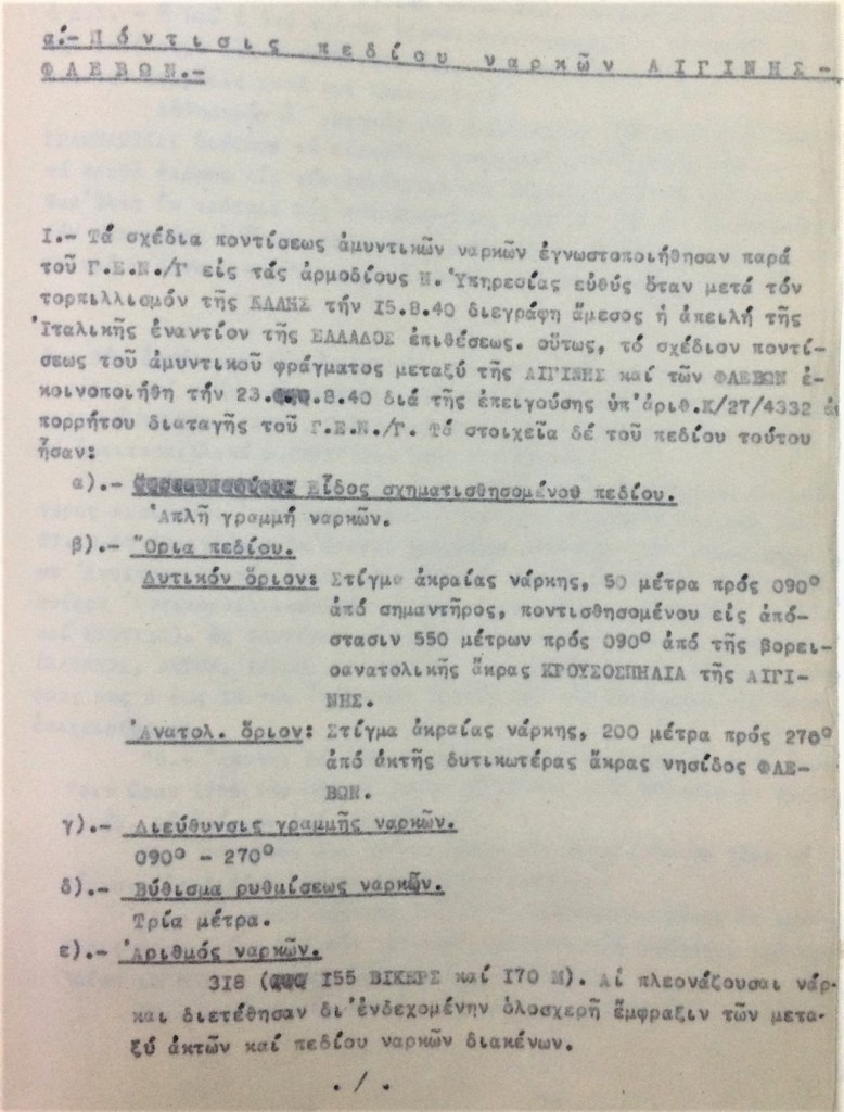 As a defensive measure to safeguard strategically vital areas, including Athens and the Port of Piraeus, the Royal Hellenic Navy secretly laid minefields in the Saronic Gulf just days after the Italians declared war on Greece on the 28th of October 1940. The largest was between Cape Tourlos on the island of Aegina and the islet of Phleves, located just off the mainland. It created a formidable east-west barrier right across the Gulf, but ended up doing nothing to stave off the relentless German war machine.