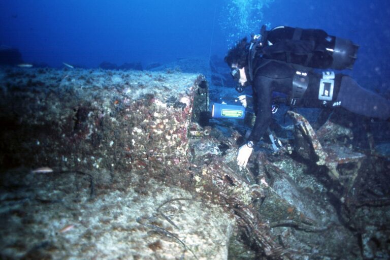 By half-past three in the afternoon, concluding their fourth and final dive of the day, any remaining hopes of a breakthrough had shattered. However, at this critical juncture, Yannis made a pivotal discovery at the very end of the last dive. Aware of his limited bottom time, he swiftly secured a decompression marker buoy to the find, inflated it and watched it shoot up to the surface before joining Vasilis on their much slower ascent back to the boat.