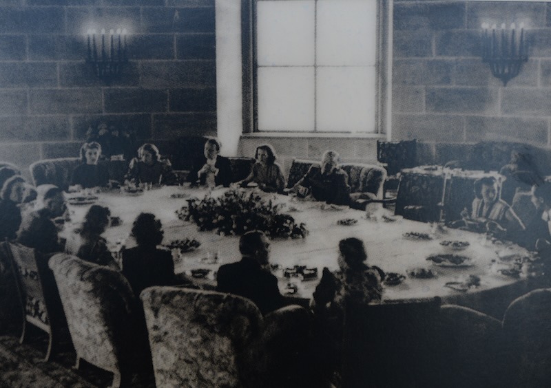 During Gretl Braun’s wedding, the room was reconfigured with a huge banquet table. Today, it is furnished with heavy wooden tables and benches, effectively making it an extension of the restaurant.