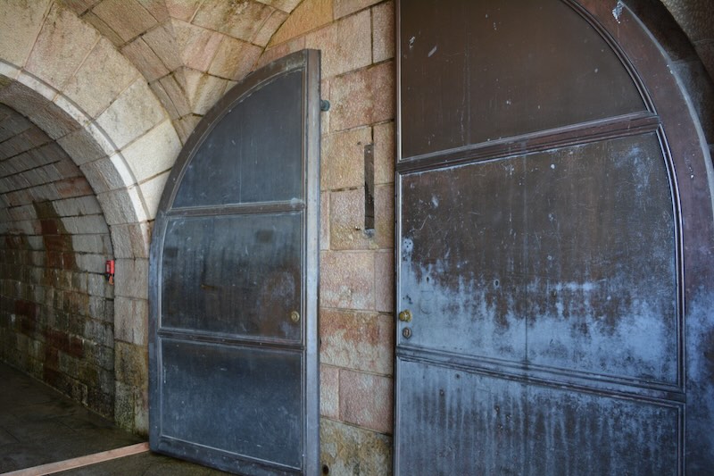 As you might expect, those six enormous windows were originally opened by being lowered into the basement using chains. In more recent times, they have been replaced with fixed glass panes.