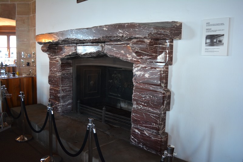 The main reception hall features an impressive red Italian marble fireplace, believed to have been gifted by Mussolini, a testament to the regime’s extravagant taste. If Hitler ever roasted marshmallows, this is where he did it. The mantelpiece, vandalised by American troops as aforementioned, still defiantly bears the date ‘1938’ embossed into the firebox metalwork at the back.