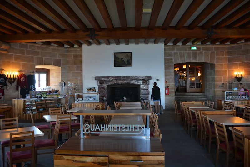 The experience of entering the Eagle’s Nest proper is both exhilarating and sombre. The elevator doors open into an entrance hall. From here it is possible to go straight outside, but a red marble-lined doorway on the right draws the curious into a sumptuous chestnut wood-lined area which was once the formal dining hall – the centrepiece of which was the large wooden table able to accommodate up to thirty diners. Behind this was a fully electric kitchen, a rarity for its time. Today, a restaurant serving breakfast and lunch operates in these areas, offering a unique dining experience.