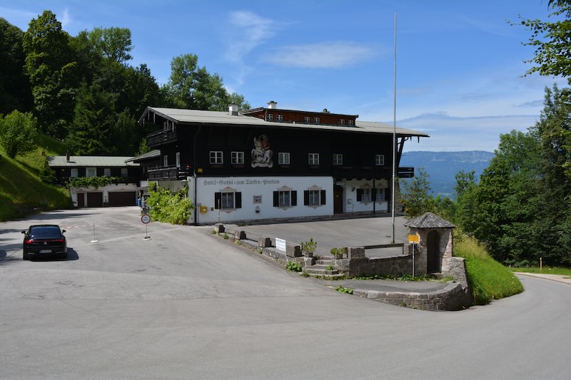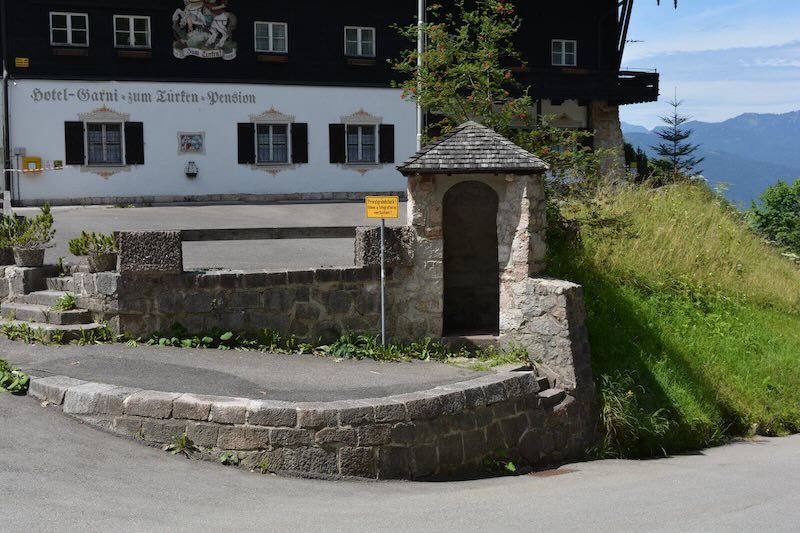 In contrast, the nearby former Hotel zum Türken, which was repurposed during the war to house the Reichssicherheitsdienst (Reich Security Service; RSD – Hitler’s bodyguard) personnel who patrolled the grounds of the Berghof, was repaired in 1950 and still stands today. Its stone sentry box where RSD guards stood is prominently located at the corner. However, the building has recently been closed to the public, denying access to the tunnels below that used to connect directly to Hitler and Eva Braun’s quarters.
