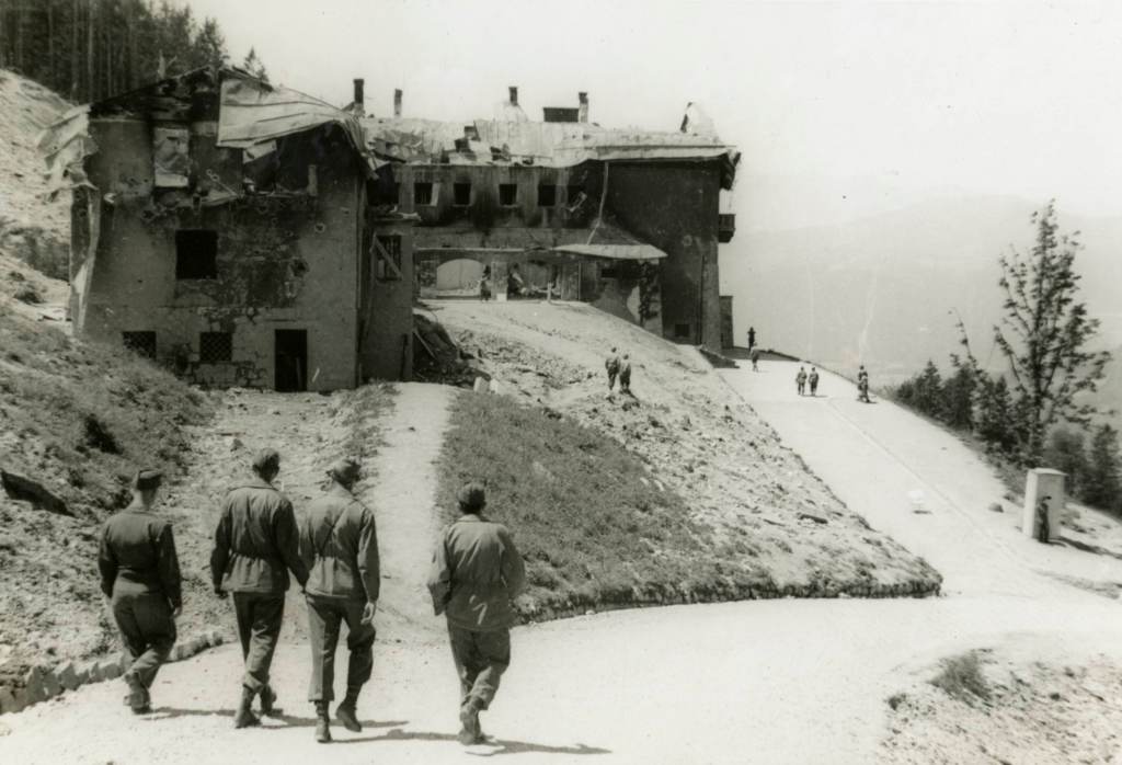 As American troops advanced into the Obersalzberg region at the very end of the war, they were greeted by the remnants of Hitler’s notorious retreat: the Berghof. The area was liberated on 4 May 1945, without serious incident by the 3rd Division of the US XV Corps, as the SS had fled and scattered earlier. Although the task of taking Berchtesgaden was initially assigned to the US XXI Corps, changing circumstances and expediency led the 3rd Division to go in first. French forces, specifically the 2nd Armoured Division, were also in the area at the time.