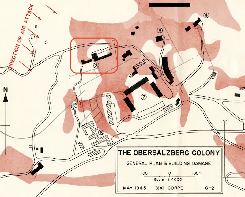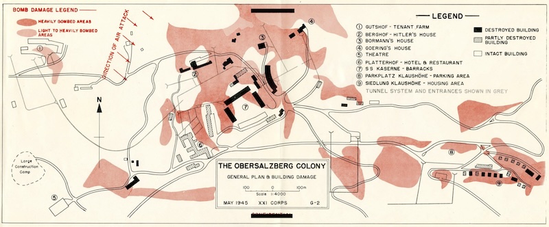 Göring’s and Bormann’s residences were also largely destroyed in the air attack. While Bormann’s house was said to be lavish, Göring’s, with the exception of his wife’s room, was relatively simple. However, it was filled with “rare and valuable bric-a-brac collected from across Europe.”