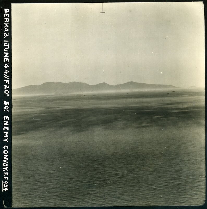 ↩︎ - A description of events (attached as Appendix 1 to the 16 Squadron SAAF Operations Report of 01.06.44) written by H.Q. 212 Group states that; “This tenacious searching [i.e. by Squadron 454 RAAF Baltimores and Squadron 38 RAF Wellingtons] found its reward when at 00:30 hrs on the 1st of June, F/O Gossen in Wellington ‘C’ of 38 Sqdn sighted a convoy of 3 MV’s, 4 large escort vessels and 4 smaller escorts, in the Southern end of the MANDIRI Channel out on a South Easterly course at 10 knots. Flares were dropped causing the vessels to open up with concentrated flak, and the convoy was shadowed. It altered course at 02:10 hrs, and then minutes later, the Wellington bombed from 8,000 ft, without results being observed.” (AIR-54-185_10)